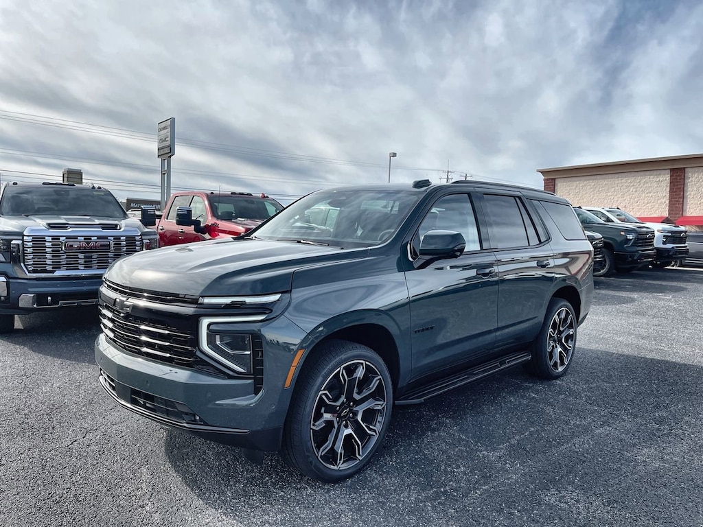 Turn heads in this 2026 Chevy Tahoe RST 4WD, finished in bold Cypress Gray with a striking Jet Black interior accented by Victory Red trim. The Tahoe RST combines athletic styling, advanced technology, and rugged capability to deliver one of the most versatile full-size SUVs in Kentucky.